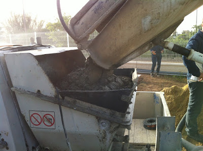 After Zoomba's adventure and a late night in we were woken at 6 in the morning by hammering outside. Are they working already? No. It's the old man of the orchard next door, who wanted to water his trees. And then your water gate is cemented shut, as the water has been rerouted via a tube. But, at 6 in the morning it's still half dark, and at his age eyesight is less, so he had not seen it. And then you just try to hammer out the gate. Lucky he did not succeed, although he managed to crack the porch. And yes, its leaking a bit.